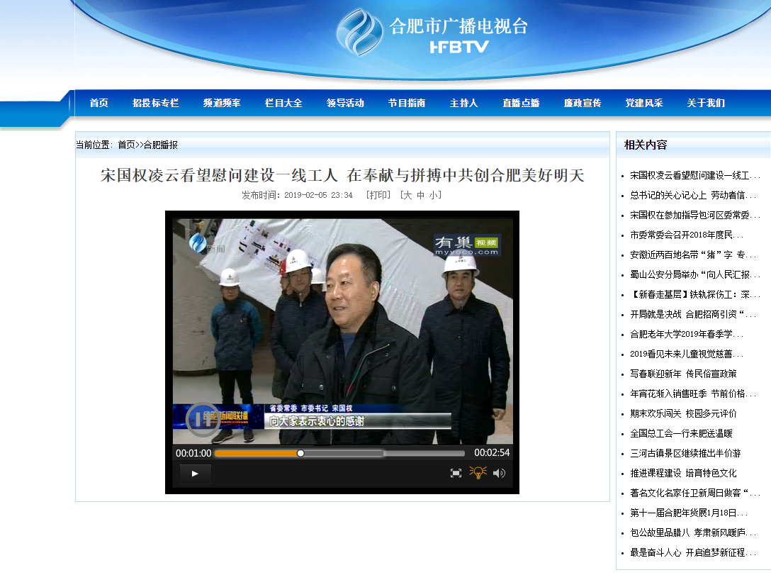 合肥日?qǐng)?bào)、合肥廣播電視臺(tái)、合肥市人民政府網(wǎng)——宋國(guó)權(quán)凌云看望慰問(wèn)建設(shè)一線工人