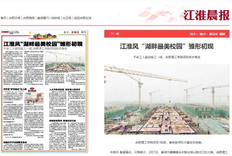 媒體聚焦丨合肥晚報、江淮晨報先后報道公司承建的合肥理工學(xué)院1標(biāo)段項(xiàng)目最新進(jìn)展