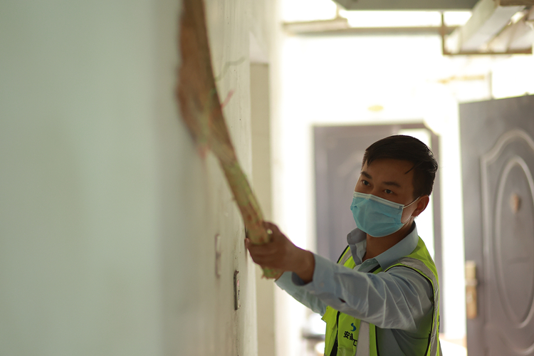 21日下午6點(diǎn),項(xiàng)目建設(shè)全面鋪開(kāi),同步推進(jìn),十幾個(gè)專業(yè)、220多名建設(shè)者,4輛大型運(yùn)輸貨車(chē)通宵鏖戰(zhàn),面對(duì)超大面積、超短時(shí)間的建設(shè)任務(wù),安徽三建倒排工期,采取“分區(qū)作戰(zhàn),分時(shí)推進(jìn)”模式,模塊化運(yùn)作,提升管理精度,共計(jì)完成施工面打磨約850平米,墻面天棚鏟除、批膩?zhàn)?40平米,裂縫處理280米,水電維修2000余處,對(duì)約14萬(wàn)平米的528套隔離房進(jìn)行了7遍衛(wèi)生清潔,整個(gè)健康驛站以小時(shí)為單位快速成型。23日下午6點(diǎn),528套隔離間全部改造完成。