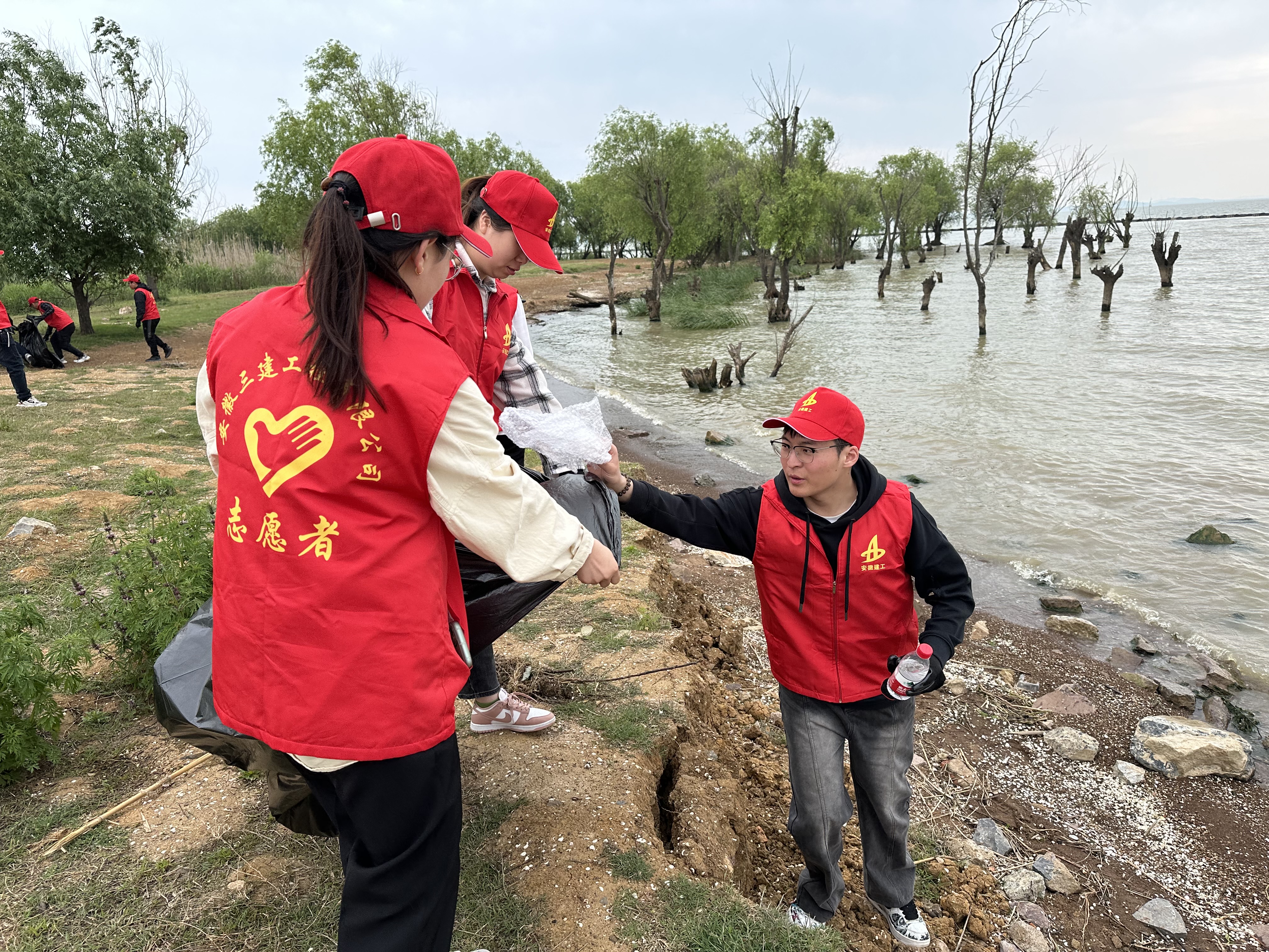 隨后,青年志愿者一行來到巢湖岸邊,開展“守護綠色巢湖”環(huán)保志愿服務活動,志愿服務隊沿岸撿拾煙頭、白色垃圾等,用實際行動保護巢湖水環(huán)境。