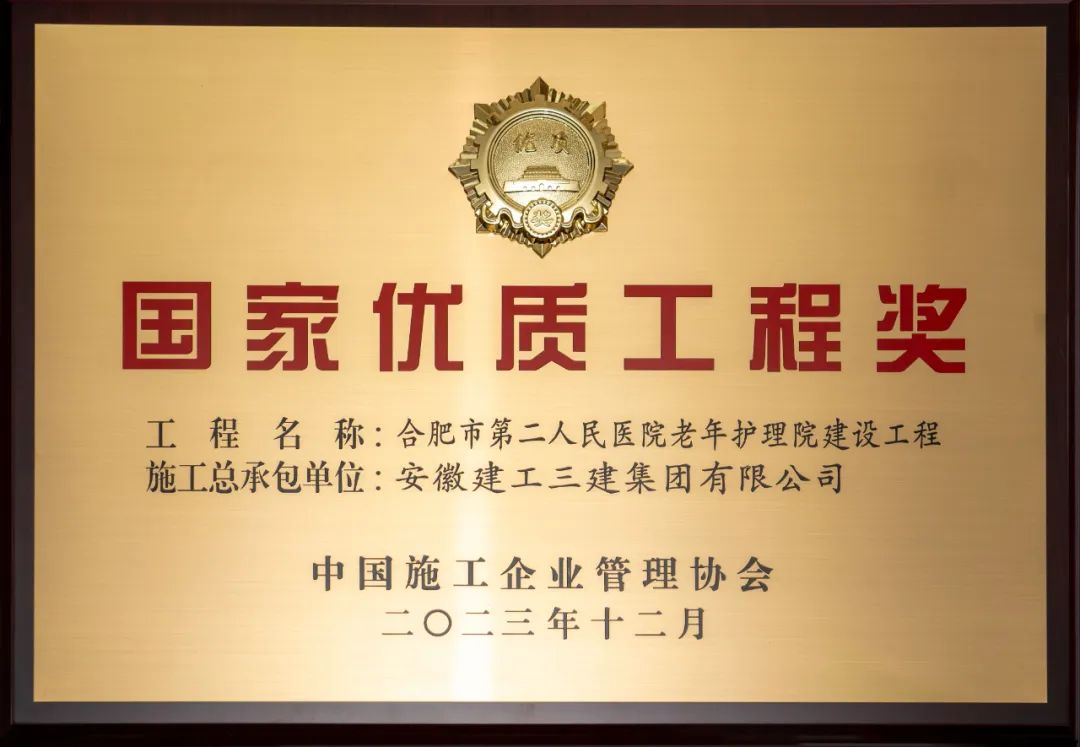 12月24日,2022-2023年度第二批國家優(yōu)質(zhì)工程獎(jiǎng)獲獎(jiǎng)名單揭曉。安徽建工三建集團(tuán)承建的合肥市第二人民醫(yī)院老年護(hù)理院建設(shè)工程榮獲“國家優(yōu)質(zhì)工程獎(jiǎng)”。至此,公司已累計(jì)獲得4項(xiàng)“國家優(yōu)質(zhì)工程獎(jiǎng)”。