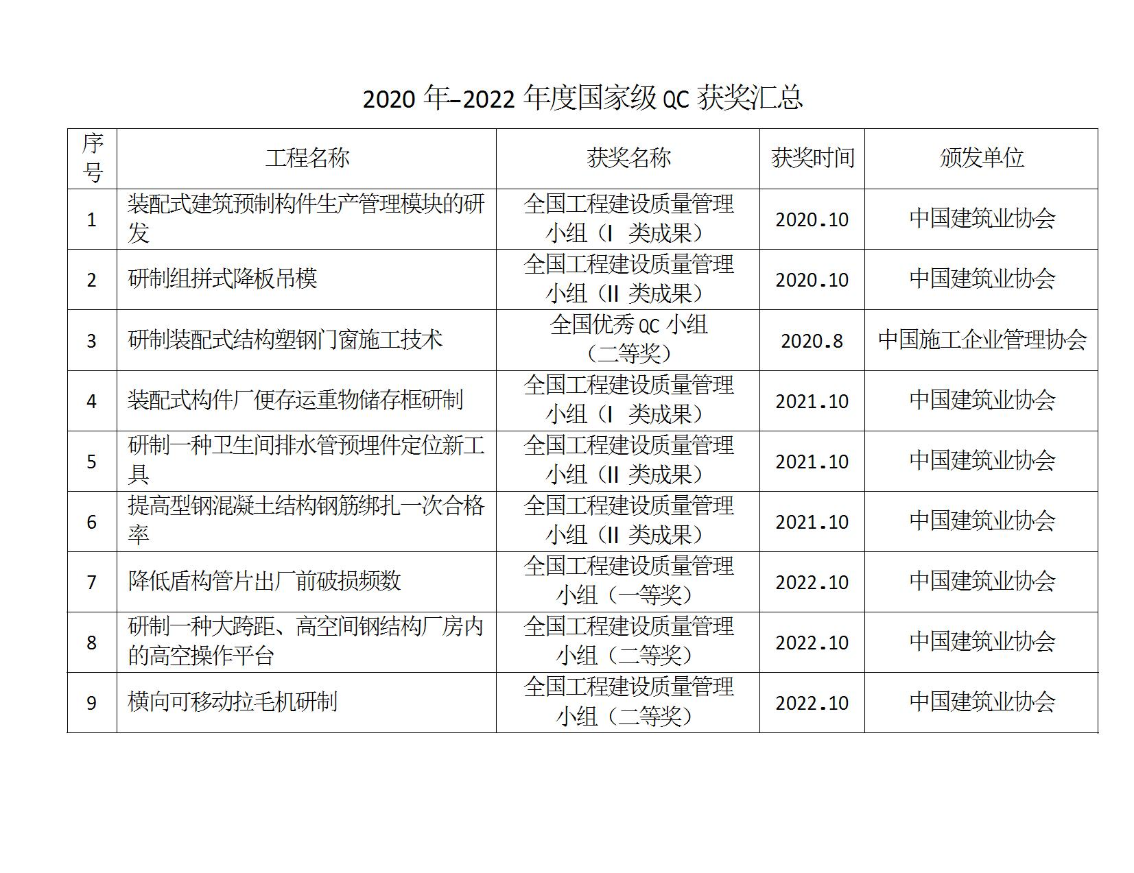 2020 -2022 年度QC獲獎(jiǎng)匯總
