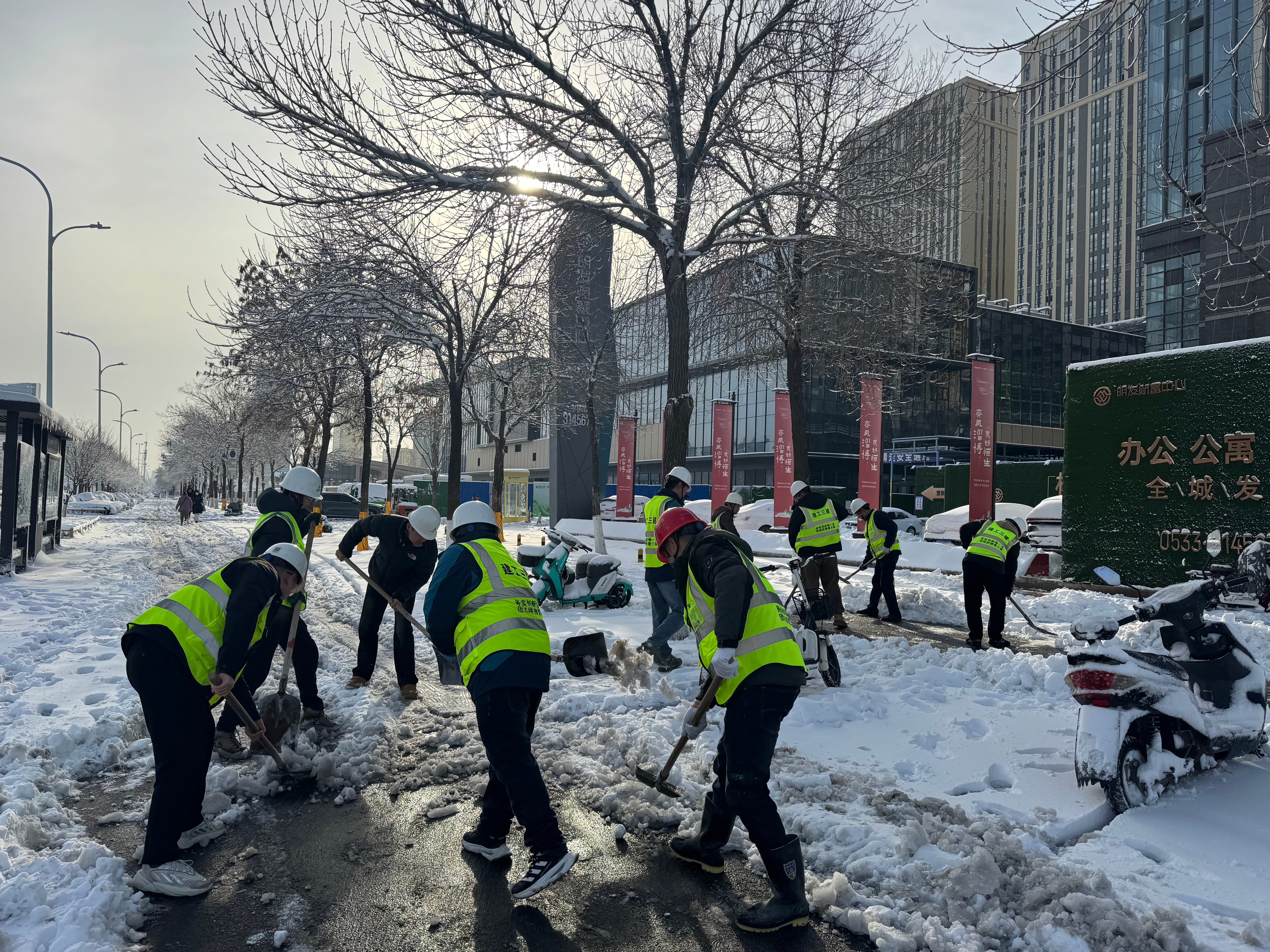3月2日,淄博市迎來(lái)特大降雪,厚厚的積雪嚴(yán)重影響居民出行及淄博明發(fā)世貿(mào)中心項(xiàng)目的施工安全。面對(duì)極端天氣,項(xiàng)目黨員同志充分發(fā)揮黨員先鋒模范作用,組織全體管理人員立即開(kāi)展鏟雪除冰行動(dòng)。