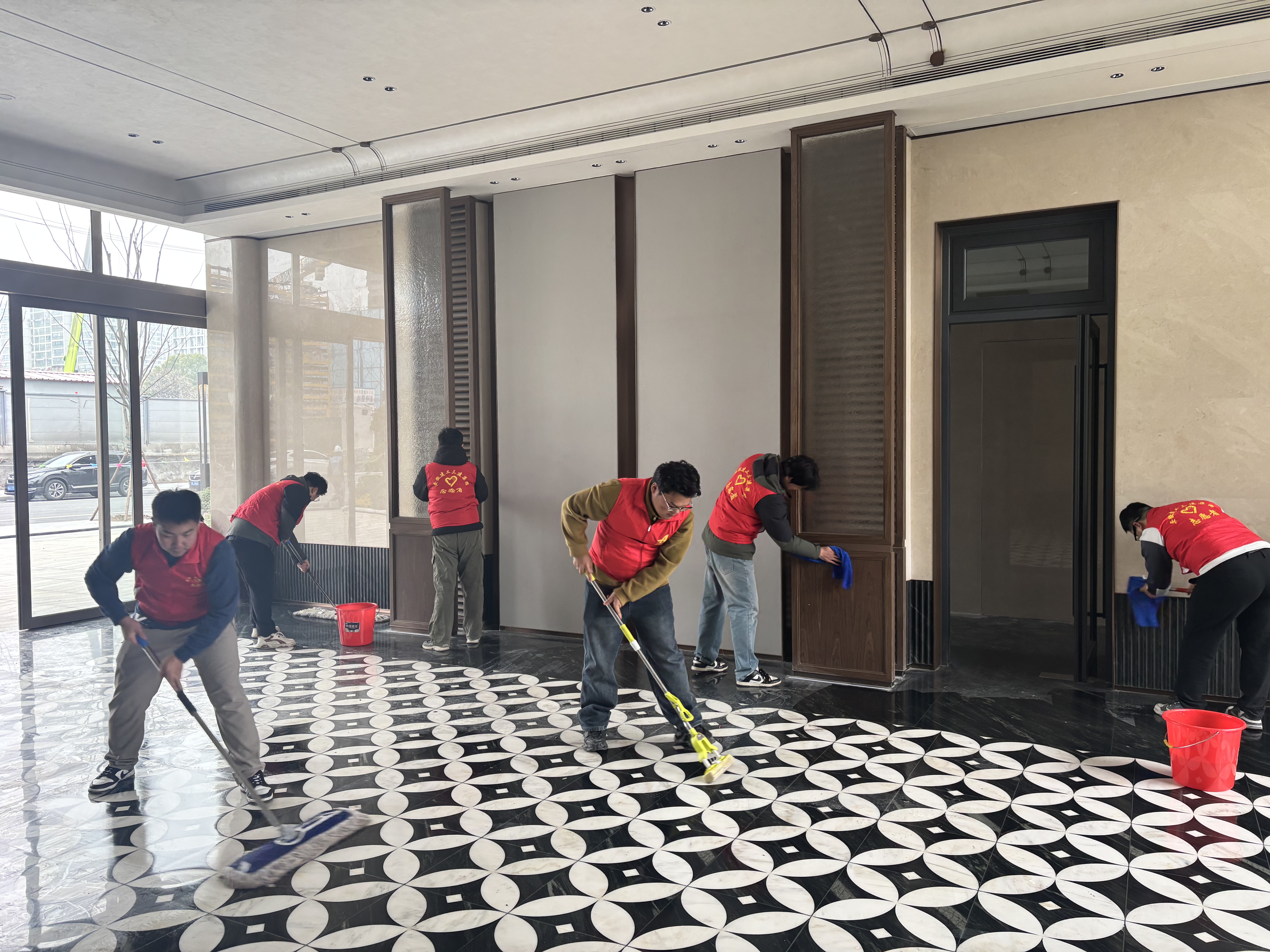 裝飾公司團(tuán)支部組織青年團(tuán)員前往王衛(wèi)片區(qū)城市更新總承包項(xiàng)目開展學(xué)雷鋒志愿服務(wù)活動(dòng),有的擦玻璃、有的拖地、有的鏟墻上遺留的膠等,經(jīng)過(guò)近一個(gè)小時(shí)的奮戰(zhàn),現(xiàn)場(chǎng)煥然一新。