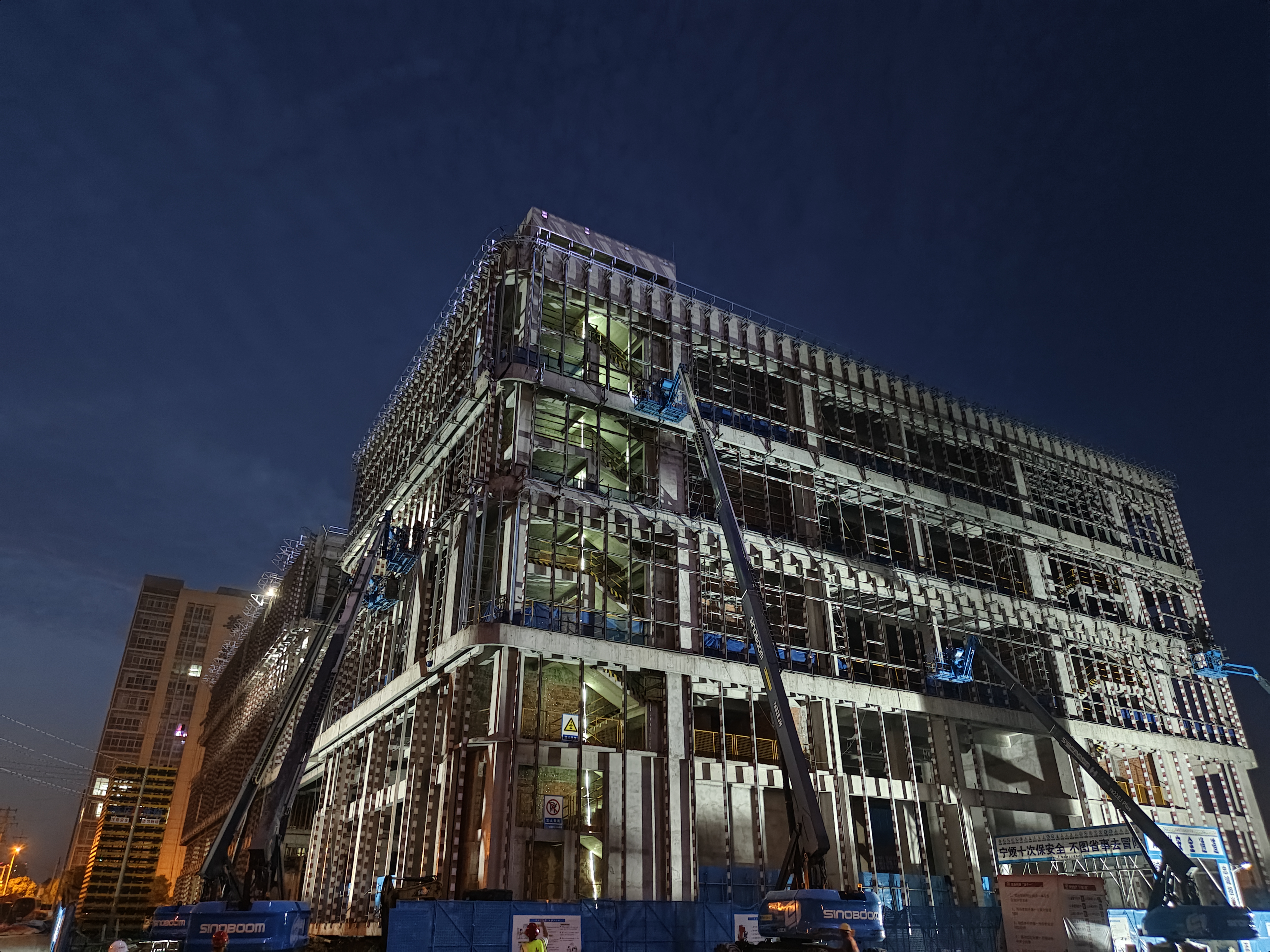 入夏以來(lái),暴雨與高溫輪番“侵襲”。在合肥未來(lái)大科學(xué)城片區(qū)一期項(xiàng)目?jī)x器儀表產(chǎn)業(yè)園項(xiàng)目施工現(xiàn)場(chǎng),建設(shè)熱潮絲毫未減。夜幕下的工地?zé)艋鹜?,直至晚間11點(diǎn)仍是一派繁忙景象,曲臂車(chē)伸展長(zhǎng)臂高效作業(yè),施工人員緊張有序地穿梭其間,運(yùn)輸車(chē)輛往來(lái)不息,200余名建設(shè)者正與時(shí)間展開(kāi)一場(chǎng)激烈的競(jìng)速賽。這是廬陽(yáng)區(qū)“一號(hào)工程”的建設(shè)現(xiàn)場(chǎng),更是一幅展現(xiàn)“合肥速度”的生動(dòng)圖景。