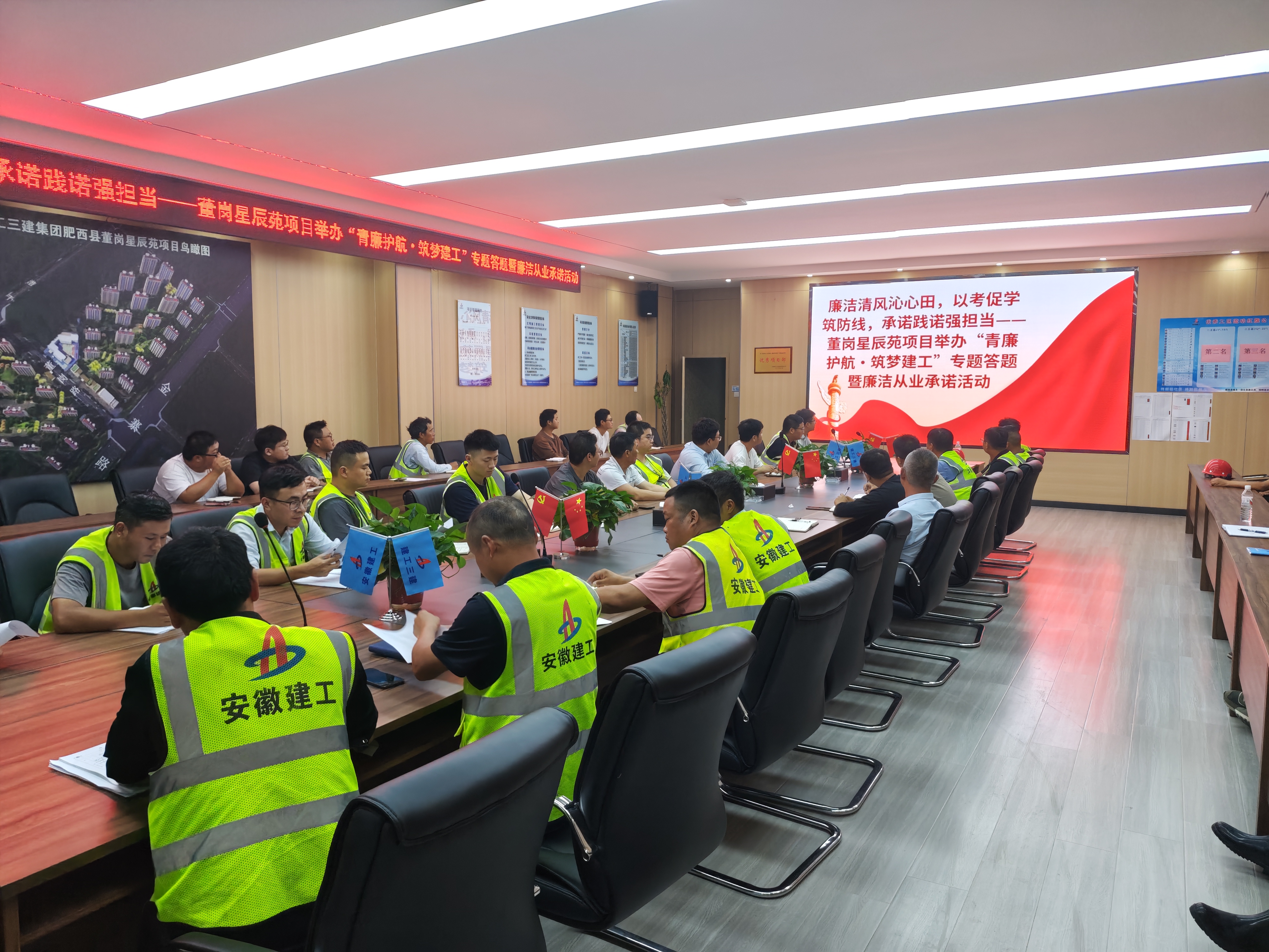 6月20日下午,董崗星辰苑項(xiàng)目部舉辦 “青廉護(hù)航?筑夢建工” 專題答題暨廉潔從業(yè)承諾活動,創(chuàng)新運(yùn)用“以考促學(xué)、以學(xué)促廉”模式,推動項(xiàng)目團(tuán)隊(duì)廉潔意識入腦入心、見行見效。